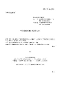 年末年始休業のお知らせ ダウンロード版